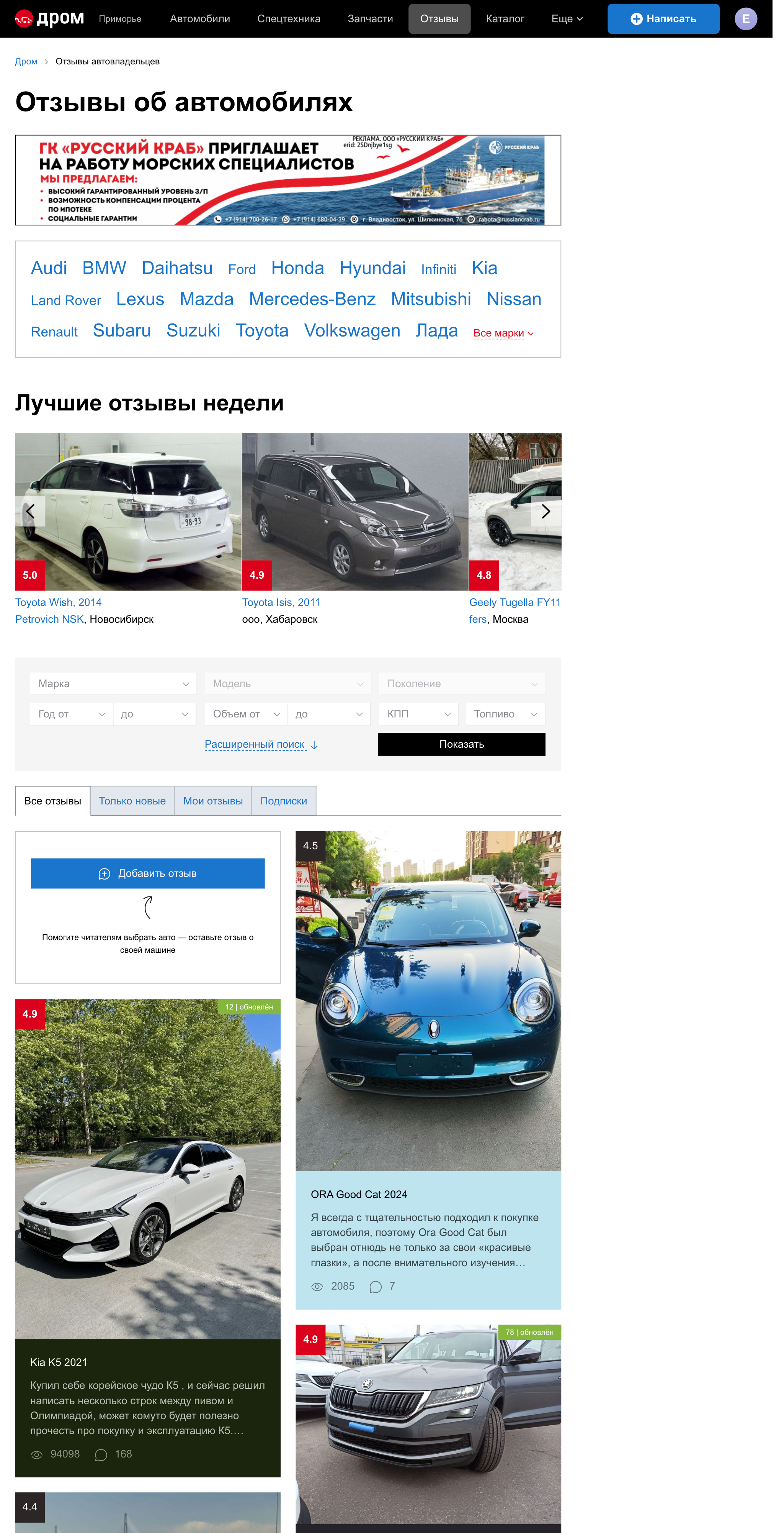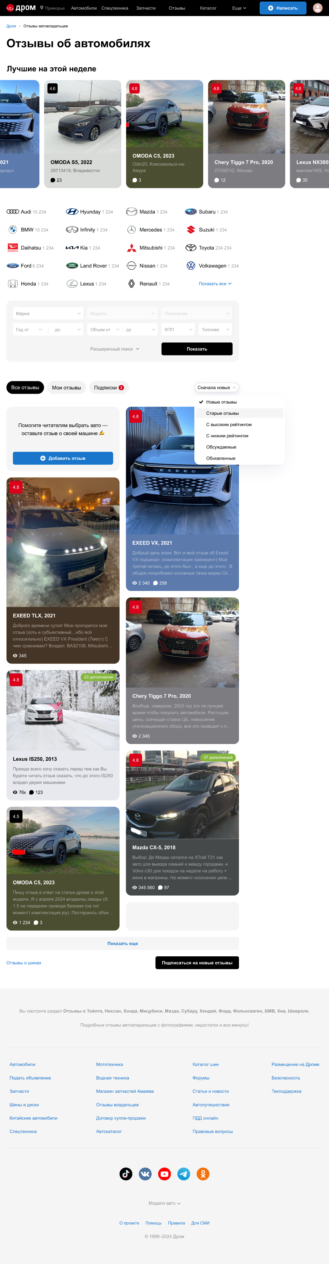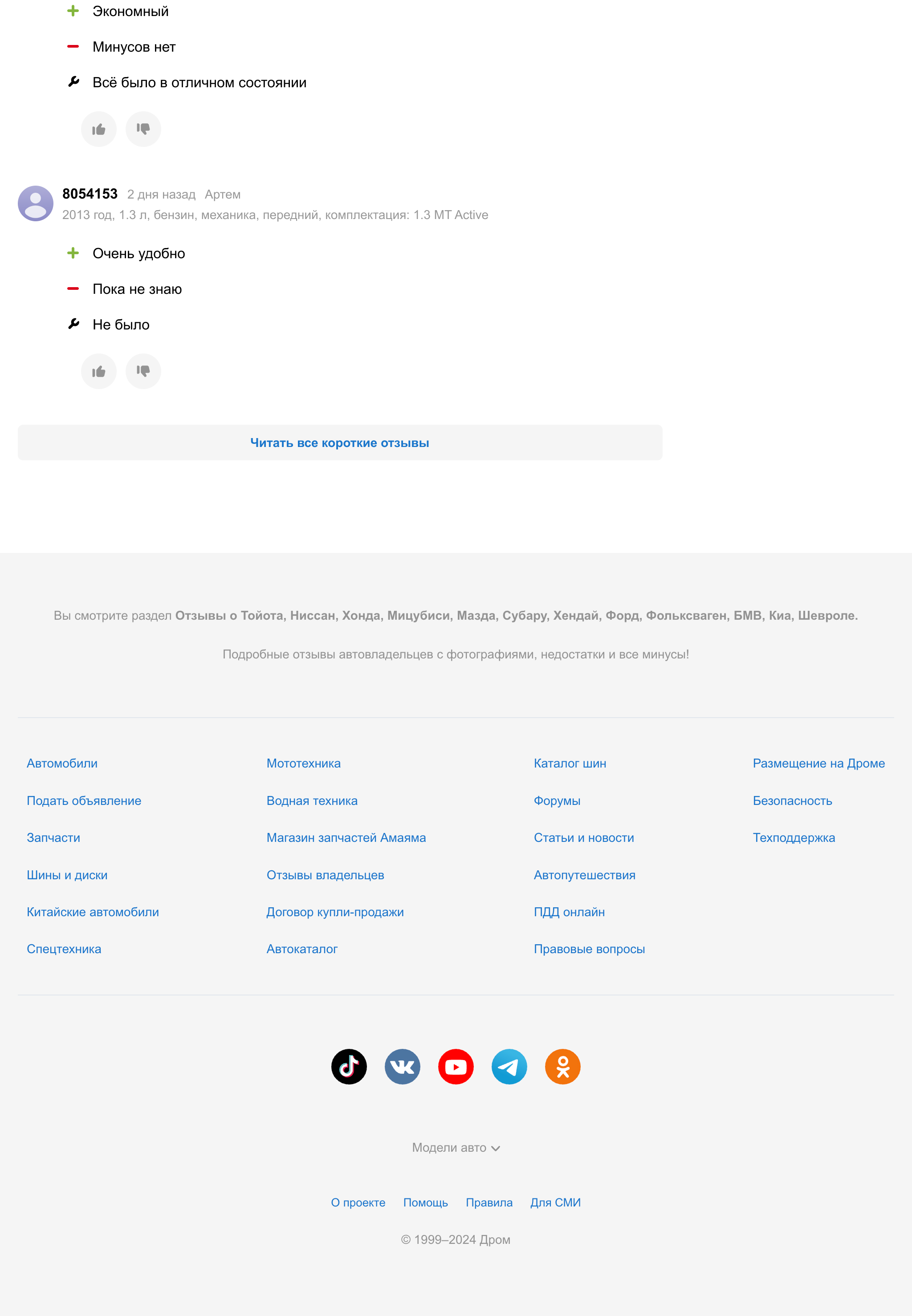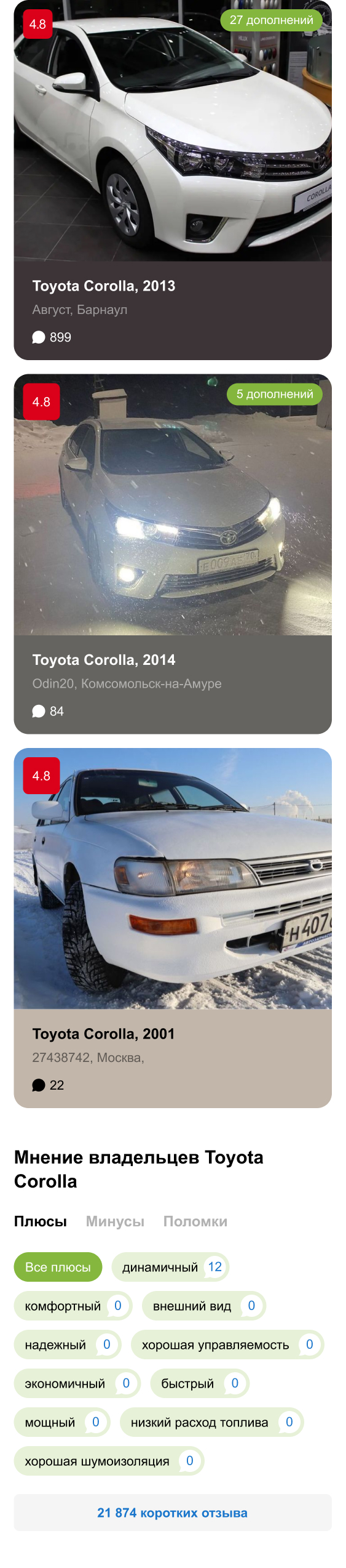 На странице с отзывами по марке и модели добавил саммари из коротких отзывов.