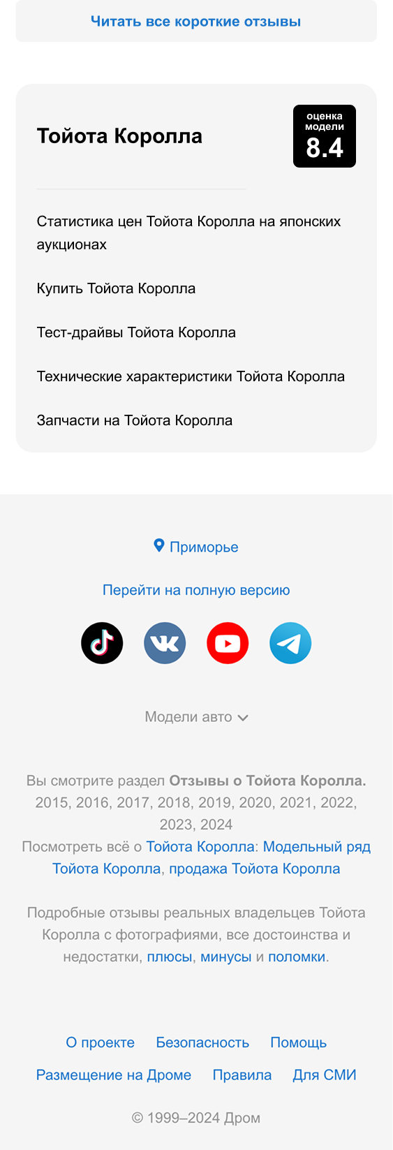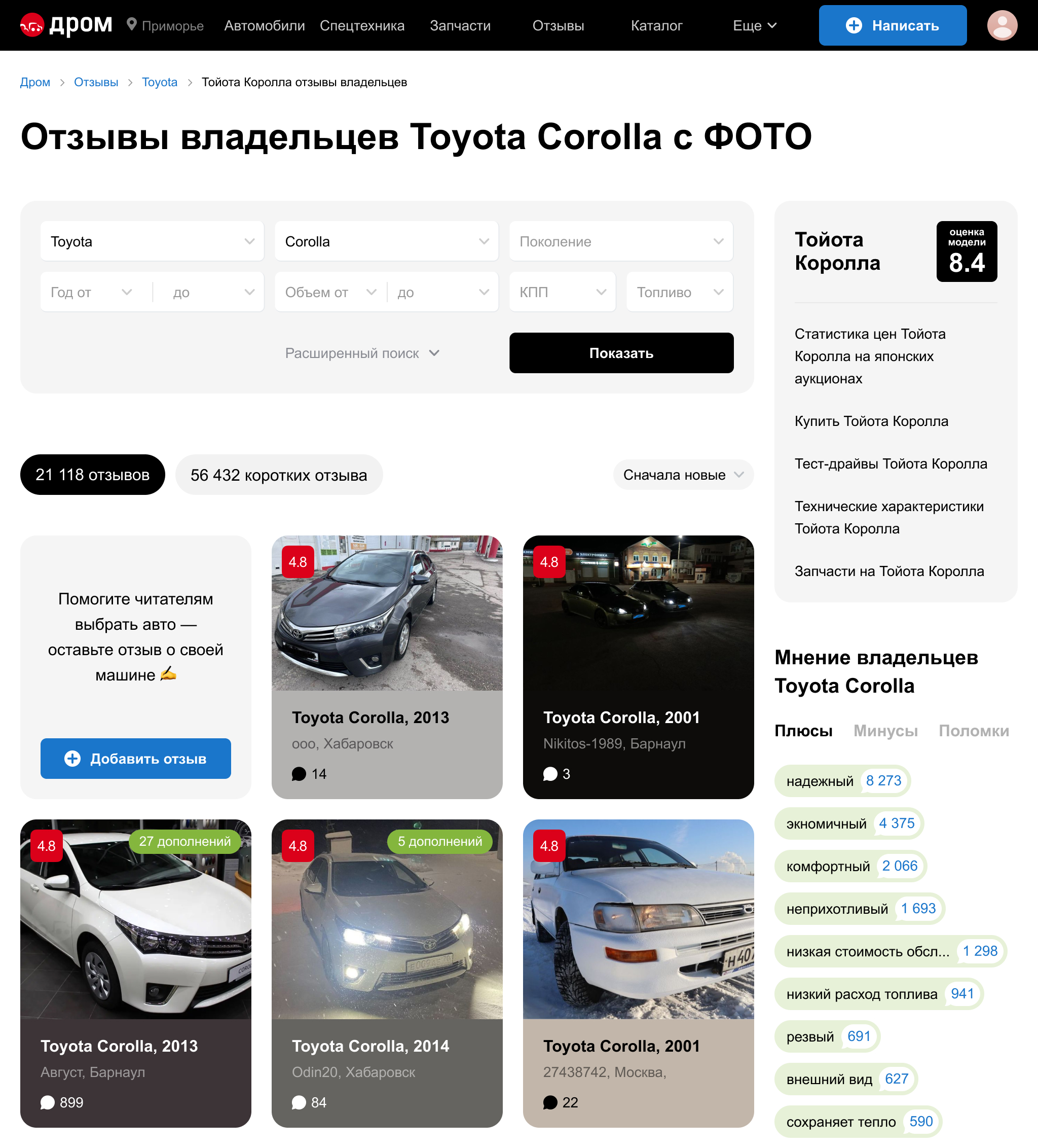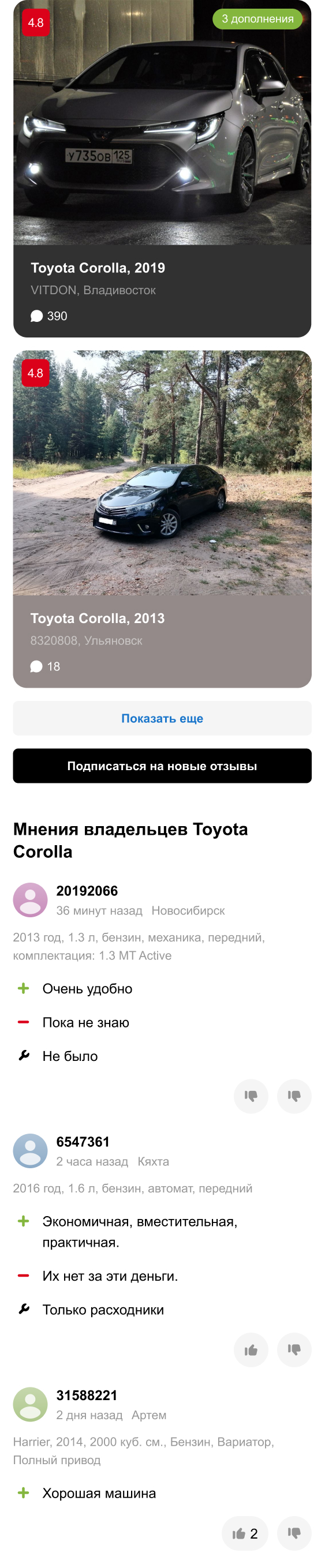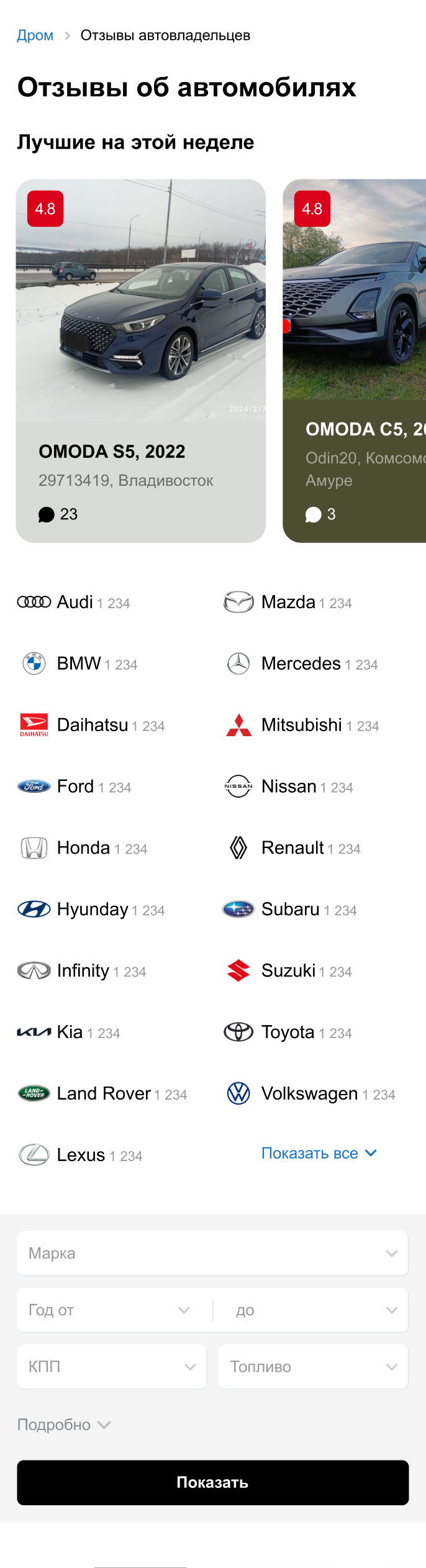 На странице с отзывами по марке и модели добавил саммари из коротких отзывов.