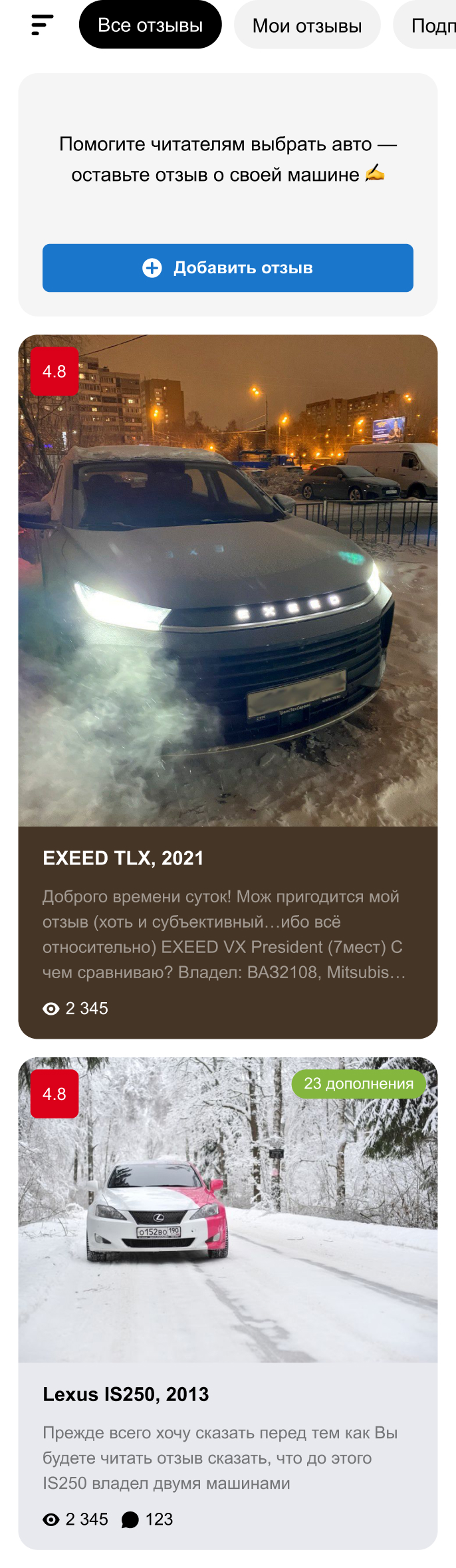 В дальнейшей работе над продуктом я добавил выжимку в объявление на сайте, полностью обновив дизайн страницы и самих отзывов. Посещаемость раздела подняли на 40%, а количество отзывов в 6 раз.