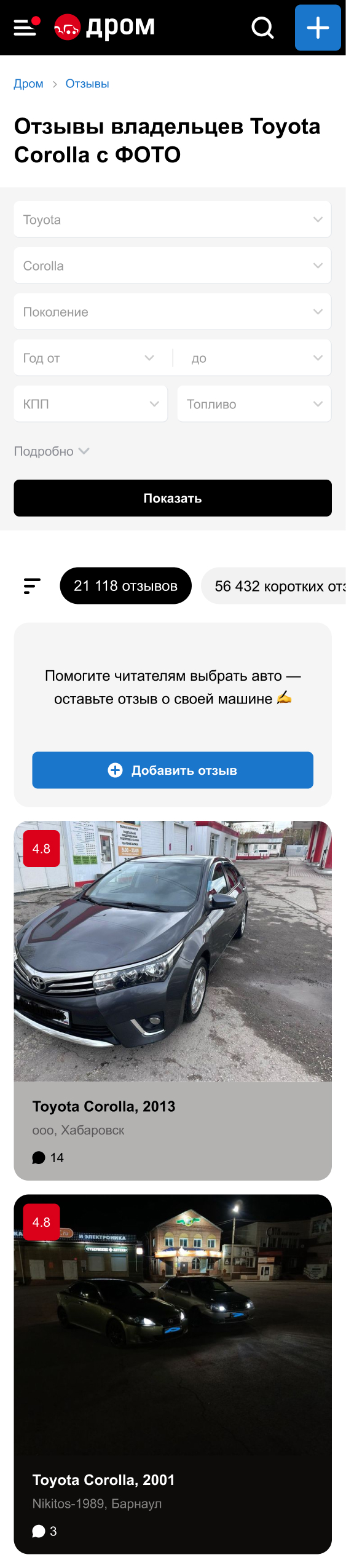 Сделать редизайн страницы со списком отзывов. Поднять ценность для пользователей. Использовать привычные для Дрома UI-компоненты.
